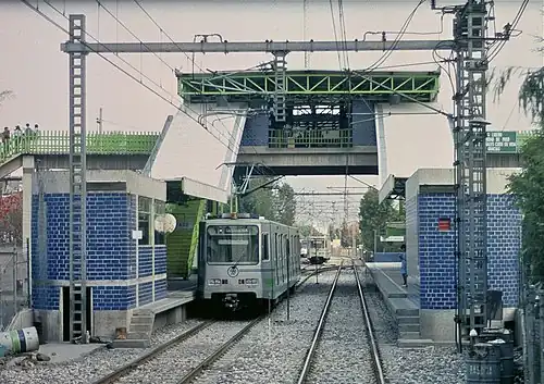 After May 1979, the only streetcar line still in operation was that from Tasqueña metro station to Xochimilco (route 54) and its short branch to Tlalpan (53).[13] STE upgraded this line in the mid-1980s as light rail, with high-platform stations for faster loading and new articulated light rail cars built using parts from old PCC streetcars, fitted with new bodies.[14] The Xochimilco Light Rail service began operating in 1986, without the Tlalpan branch. It continues in operation today, with newer cars, and locally is known as the Tren Ligero. It is STE's only rail line.[6] Construction of a new streetcar line (or tranvía) in the city center was planned,[15] with STE managing the construction bidding process for the project,[16] but on 31 May 2010 the project was cancelled by mayor Marcelo Ebrard, on cost grounds.[17]