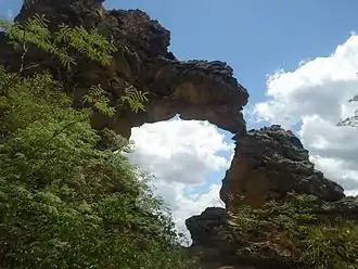 The park contains arid savanna forest (babassu forests] and areas of contact between savanna, arid savanna, and seasonal forest. It protects an important geological formation and conserves water resources in a dry region. The geological monuments are the main attraction. The park also has some pre-historic cave paintings and inscriptions.[4]