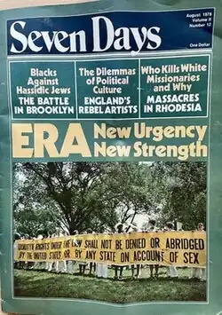 Seven Days was an American alternative news magazine written from a leftist or anti-establishment perspective.[1][2] Founded by antiwar activist David Dellinger and others, it was published from 1975 to 1980 by the Institute for New Communications, a non-profit organization in Manhattan.[3][2] The magazine ran without advertising for its first year,[4] and relied heavily on private donors through its final issue.[5]