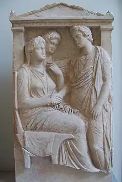 The most famous example of a sex strike in the arts is the Greek playwright Aristophanes' work Lysistrata, an anti-war comedy.[3] The female characters in the play, led by the eponymous Lysistrata, withhold sex from their husbands as part of their strategy to end the Peloponnesian War.