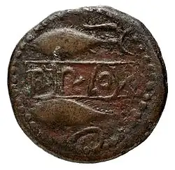 The ancient Phoenician settlement, whose earliest phases are unclear, was located southwest of the Solorius Mons (the modern Sierra Nevada mountain range). From the 3rd-2nd centuries BC it issued a sizable corpus of coinage, with many coins depicting the Phoenico-Punic god Melqart on the obverse and one or two fish on the reverse, possibly alluding to the abundance of the sea and also a principal product of the area.[4] The Barrington Atlas of the Greek and Roman World equates ancient Sexi with modern Almuñécar.[5]