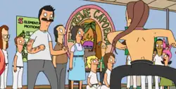 Tina signs up for the class and practices capoeira a lot at home, but the rest of the family compares capoeira to dancing. Tina becomes more interested in Jairo and extends her classes to see him more. Meanwhile, the other kids fail at taking over Tina's grill cooking position and Bob needs to go to the toilet at 4:30 like he usually does (he refers to it as an afternoon meeting) but Tina is not at the restaurant to cover for him. Bob postpones his meeting and goes to the capoeira studio to demand that Tina go back into the restaurant. While there, Bob meets Jairo and criticizes him and capoeira. Jairo forces Bob to have a duel with him, which he easily wins by whipping his hair at him and making him fall and embarrassingly poop in his pants. Bob wants his family to never mention what happened at the class and forbids Tina from continuing to attend the class. Tina resumes lying on the floor and groaning throughout the rest of night. Jairo visits the restaurant the next day after receiving a letter from Tina (which was actually from Louise who forged Tina's name to get her father to take revenge on Jairo for the incident) and suggests that Tina should come back because next week all attenders will get promoted to yellow cord. Tina goes with Jairo and quits her job at the restaurant.