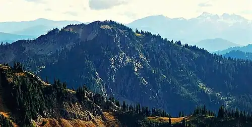 Seymour Peak is a 6,337-foot-elevation (1,932-meter) mountain summit located in Mount Rainier National Park in Pierce County of Washington state.[3] It is part of the Cascade Range and is situated southeast of Cayuse Pass and northeast of Shriner Peak. Its nearest higher neighbor is Dewey Peak, 0.79 mi (1.27 km) to the east.[1] Precipitation runoff from Seymour Peak drains into tributaries of the Cowlitz River. Seymour Peak is named after William Wolcott Seymour (1861–1929), mayor of Tacoma, Washington, from 1911 to 1914. He was also a philanthropist, mountaineer, and a contributor to the scouting movement.[4] This landform's toponym was officially adopted in 1932 by the U.S. Board on Geographic Names.[3][5]