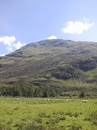 Although the mountain is lower in height than many of its neighbours, it still offers excellent views from its summit. The path zig zags up to the top. The nearest main village is Dornie.[2]