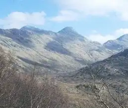 ![]() Looking up Strontian Glen towards Sgurr Dhòmhnuill | |