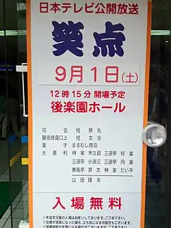 Shōten (笑点; "Laughing Point") is a Japanese TV comedy program that has been continuously broadcast on Sunday evenings on Nippon TV since 15 May 1966, making it the second-longest running variety TV show in Japan.