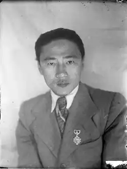 Shagdarjavyn Natsagdorj was born in 1918 in Amgalanbaatar, near the Mongolian capital of Ulaanbaatar.[1] The revolutionary socialist policies of the Mongolian People's Republic (MPR), founded in 1924,[2] compelled him to leave primary school in 1930; he returned to education in 1932, after an armed uprising compelled the government to adopt the New Turn Policy, a less hardline stance.[3][4] In 1935, he was accepted as an apprentice in the Institute of History at the Mongolian Academy of Sciences (MAS); two years later in 1937, he was appointed the Institute's director. His early work concentrated on the life of the revolutionary hero Damdin Sükhbaatar and culminated in a 1943 biography which received the first Marshal Choibalsan State Award.[3] A decade later in 1955, Owen Lattimore and Urgunge Onon published an English translation of this work—the first translation of a biography of a revolutionary figure, it would establish Natsagdorj's reputation in the English-speaking world.[5]