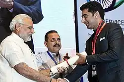 ![]() Shahid Iqbal receiving Prime Minister’s Award for Excellence in Public Administration from Prime Minister of India Narendra Modi | |