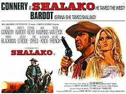 Shalako is a 1968 Western film directed by Edward Dmytryk and starring Sean Connery and Brigitte Bardot. It was shot at Shepperton Studios near London with sets designed by the art director Herbert Smith. Location shooting took place in Almería in southern Spain, particularly in the Tabernas Desert which was frequently used in European westerns during the decade.