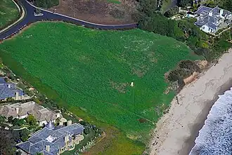 In 1958 most of the estate was sold to developers, and a condo complex was built in the 1960s named for the Bonnymede mansion that was destroyed in a fire. Complex and contentious negotiations followed until 1989, when 20 condos and 12 private homes were built on the remaining land with three acres of the meadow preserved for public use.[3] Hammond's Estate is on the only Chumash site in the coastal zone that is currently listed on the National Register of Historic Places.[4] Some controversy continues regarding use and maintenance of the meadow, one of the few remaining public coastal parcels in Montecito.[5][6] The adjoining beach is one of California's popular surfing locations.[7]