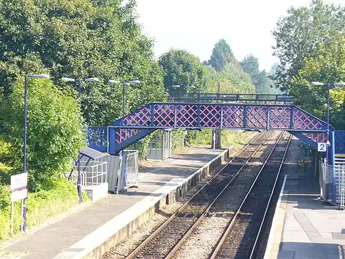 Shalford railway station serves the village of Shalford, Surrey, England. The station, and all trains serving it, are operated by Great Western Railway. It is on the North Downs Line. The station is 41 miles 2 chains (66.0 km) from Charing Cross, and has two platforms, which can each accommodate a six-coach train. To the west is Shalford Junction, 41 miles 60 chains (67.2 km) from Charing Cross, where the North Downs Line meets the Portsmouth Direct Line 31 miles 42 chains (50.7 km) from Waterloo (via Woking).[1]