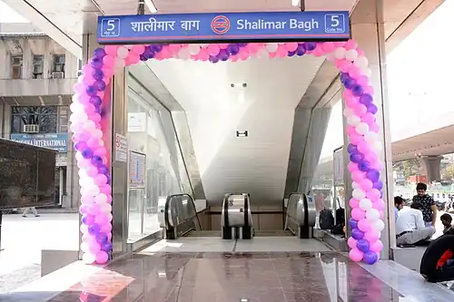 The Shalimar Bagh metro station is located on the Pink Line of the Delhi Metro.[1]