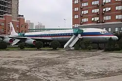There are missiles and aircraft outside the building.[2] The center has a 3D video room and flight simulators. Among the passenger aircraft on display is an ex-JAL DC-8 airliner (Registration: JA8048) that was involved in an accident at Shanghai in 1982. There are also Il-14 and DHC-3 on ground. Several early Chinese military aircraft on display including J-6C, J-5 and DF-102 fighters, Q-5 attack aircraft, Z-5 helicopter, CJ-6 trainer.