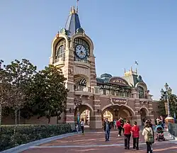 Mickey Avenue, the entrance of the park, is the park's equivalent to Main Street, USA The area is inspired by the personalities of Disney cartoon characters such as Mickey Mouse, Minnie Mouse, Donald Duck, and Chip 'n' Dale as well as Disney films, including Ratatouille, The Three Caballeros, and Lady and the Tramp.[36] Avenue M Arcade, the largest gift shop in the park,[37] is modeled after the Carthay Circle Theater.[38] The Storytellers statue, which depicts a young Walt Disney and Mickey Mouse, is at the end of Mickey Avenue and in front of the Gardens of Imagination.