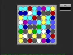 Shariki (Russian: Ша́рики, "The Marbles") is a puzzle video game written in 1994 for MS-DOS by Russian developer Eugene Alemzhin. The goal of the game is to gain progressively higher scores by matching three or more balls of the same color in a line (vertical or horizontal), by swapping adjacent balls. Each swap must result in a match. Matched balls are then removed, and new ones drop from the top to fill the gaps. The game is over when no more matches are possible in the game field.