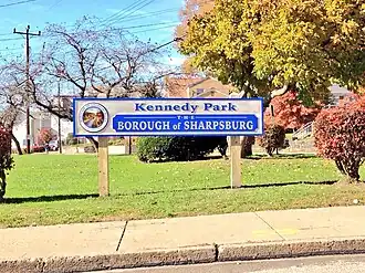 Less than a century ago, Sharpsburg was divided into two sections because of a railroad track that went through the location where Kennedy Park currently sits. There were two fire departments, one on each side of the tracks. There were two schools on each side of the track as well, one "up street" and one "down street". Once the railroad tracks weren’t used anymore, the railcars sat vacant on the tracks. The Junior Chamber of Commerce in Sharpsburg went to the railroad company as well as the Heinz family to try to change something about this. The Heinz family said they would help build a park if it was used for recreation purposes only. The park was built around the time when President John F. Kennedy was assassinated, and that is why the area was named Kennedy Park.