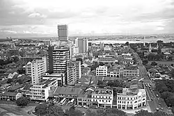 1976 bird's eye view of Bras Basah Road, showing how Shaw Tower (the tallest building in the background) was a landmark in the area at the time.