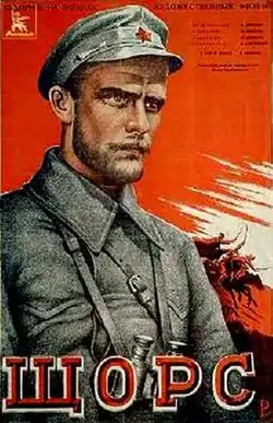 Shchors (Russian: «Щорс») is a 1939 Soviet biopic film directed by Oleksandr Dovzhenko and Yuliya Solntseva. Commissioned by Joseph Stalin,[1] the film is a biography of the partisan leader and Ukrainian Bolshevik Nikolai Shchors.[2] Shchors is played by Yevgeny Samoylov (1912–2006).