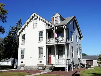 Built in 1862, this historic structure is a 2+1⁄2-story, T-shaped,brick dwelling that was designed in the Gothic Revival style. It sits on a granite foundation, has a cross gable roof, and features an ornamental fascia board and porches with ornamental balustrades. Shortly after it was built, it housed the Oak Ridge Seminary, a girls' school.