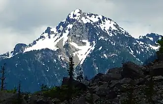 Sheep Mountain is a 6,166-foot-elevation (1,879-meter) summit near the western edge of the North Cascades, in Snohomish County of Washington state.[3] It is located one mile east of Barlow Pass along the Mountain Loop Highway near the Monte Cristo area. It is situated on land administered by the Mount Baker-Snoqualmie National Forest. Back in the old mining days of the late 1800s, the long sub-range stretching from Cadet Peak to Sheep Mountain was known as Pride of the Mountains Range.[4] Precipitation runoff from the mountain drains into tributaries of the Sauk River.