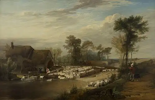 Sheepwashing is an 1817 landscape painting by the British artist David Wilkie.[1] It depicts a rural scene of shepherds washing sheep near a watermill. Wilkie was an admirer of Dutch landscapes of the seventeenth century by Jacob van Ruisdael and Meindert Hobbema and the painting is reminiscent of their styles.[2] It has been described as the only "pure landscape" that Wilkie ever exhibited.[3]