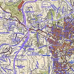 Sheikh Badr was on a hilltop south of Jaffa Road,[4] extending from the present-day Hebrew University of Jerusalem at Givat Ram to the Jerusalem International Convention Center (Binyanei HaUma). Its western flank was bordered to the north by the Jewish neighborhood of Romema,[5][6] founded in 1921,[7] placing it close to the entrance to the city of Jerusalem.[8]