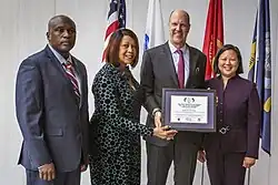 Oliver was sworn in as lieutenant governor on January 16, 2018.[37] She was the second lieutenant governor in the history of the state.[38] Oliver was also the first black woman to serve as lieutenant governor of New Jersey and the first woman of color elected to statewide office in New Jersey.[39] Oliver served as the Commissioner of the New Jersey Department of Community Affairs during her tenure as lieutenant governor.[40]