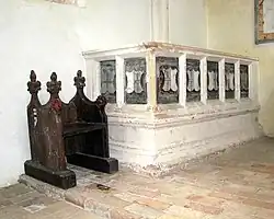 There is a glazed effigy of Sir John Shelton and his wife in the church. A descendant, Captain James Shelton sailed in 1610 to America with Thomas West, Lord De La Warr, his uncle & brother of his mother, Jane West, Baroness Shelton, thus establishing the Sheltons in Virginia. John Smith in his "General Historie of Virginia" (Volume 2, p. 549) writes that James Shelton was a resident of Jamestown, Virginia in 1620 and that he was a member of the court from 1619–1624. Smith writes that the Sheltons owned property in Virginia and did a large business with Bermuda. As soon as trade opened between Bermuda and Virginia, James Shelton moved from Virginia to Bermuda where he had large grants of land, and died there in 1668.