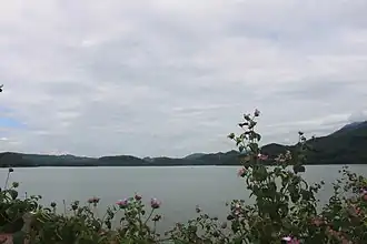 The reservoir borders Donghu Park and Fairy Lake Botanical Garden and drains the western slope of Mount Wutong.[1] The reservoir discharges into Sham Chun River, the natural border between Hong Kong and Mainland China, together with the Sha Tau Kok River.[2]