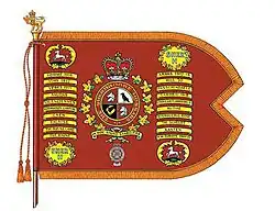 The guidon of The Sherbrooke Hussars has, at its centre bottom, the device of the Royal Rifles of Canada[25] to denote the honorary distinction battle honour for Hong Kong.