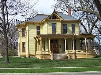 Sherman Hill took its name in the early 1970s, borrowed from the name of Hoyt Sherman Place, which is located in the southeast part of the neighborhood. In the early 1870s, Des Moines banker Hoyt Sherman built his brick "palazzo" on a hill overlooking the city center. He was followed by local developers such as Talmadge Brown, James Savery and W.C. Burton who laid out streets and lots in the first of seven subdivisions which now encompasses the district. The forty years of development saw the construction of late Victorian mansions, simple hipped box houses, the gable-roofed vernacular houses and small cottages. After 1900 multi-family apartment buildings were built in the district. It has the highest concentration of residential architecture from the late 19th-century and the early 20th-century in Des Moines.[2] Given the range of architecture and houses sizes it has also contained a variety of income levels over the years.