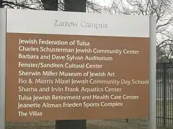 The Sherwin Miller Museum of Jewish Art (SMMJA) in Tulsa, Oklahoma, was founded in 1966 as the Gershon & Rebecca Fenster Museum of Jewish Art. From its inception until 1998, Tulsa's Congregation B'nai Emunah Synagogue housed the museum.[2] Sherwin Miller was the museum's first curator.[3] In 2000, the museum was renamed the Sherwin Miller Museum, and it moved to its present location at 2021 E 71st St in Tulsa, OK 74136 on the Zarrow Campus of the Jewish Federation of Tulsa in November 2004. The Sherwin Miller Museum, which houses the largest collection of Jewish art in the Southwestern United States, received accreditation by the American Alliance of Museums in 2013.[1]