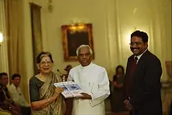 The President of India, K R Narayanan receiving a Copy of the Book "My Years in USSR" from Sheila Gujral