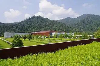 The design, by architect Fumihiko Maki, references the locally-important tatara steel; construction was completed in March 2006.[1]