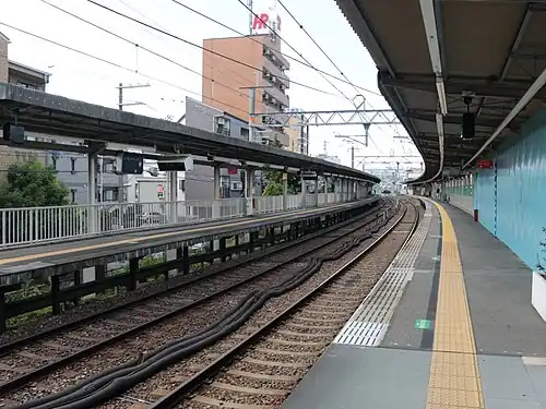Construction is underway for grade separation. Work is being done as of 2019 to elevate a 3.3 km (2.1 mi) section of the Kyoto Line between this station and Kami-Shinjō Station.[1] Originally planned to be opened by 2020, various delays have resulted in the opening being pushed to 2031.[2]