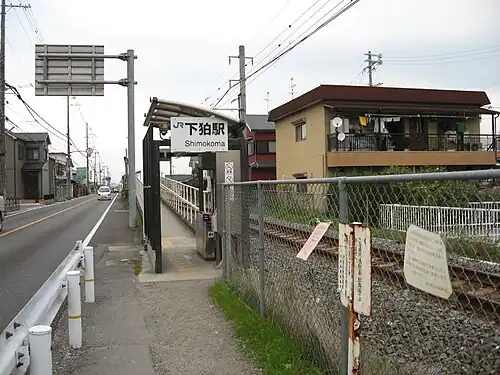 Shimokoma Station is served by the Katamachi Line (Gakkentoshi Line), and is located at 7.4 km (4.6 miles) from the terminus of the line at Kizu.