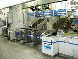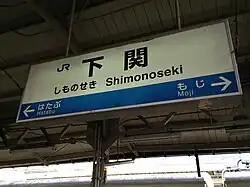 Shimonoseki Station (下関駅, Shimonoseki-eki) is a passenger railway station located in the city of Shimonoseki, Yamaguchi Prefecture, Japan. It is operated by the West Japan Railway Company (JR West).[1] The station is a freight depot of the Japan Freight Railway Company (JR Freight).
