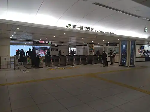 New Chitose Airport Station (新千歳空港駅, Shin-Chitose Kūkō Eki) is a railway station of Hokkaido Railway Company (JR Hokkaido).[1] It is located beneath the Domestic Terminal building of New Chitose Airport in Chitose, Hokkaido, Japan.[2] The New Chitose Airport Station is the north most and east most railway stations in Japan which are connected to an airport. It is also the east most underground railway station in Japan.