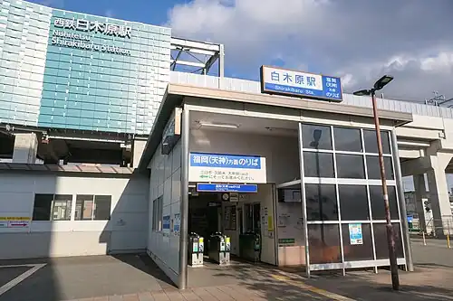 Shirakibaru Station (白木原駅, Shirakibaru-eki) is a passenger railway station located in the city of Ōnojō, Fukuoka, Japan. It is operated by the private transportation company Nishi-Nippon Railroad (NNR), and has station number T10.[1]