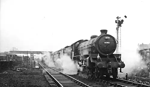 4. The route from Lincoln through Shirebrook North and Clowne South served as a diversionary route. Notably, this led to the occasional appearance of March "Britannia" 4-6-2s on the Liverpool Central-Harwich Parkeston Quay Boat Train (known locally as "The Boaty") trundling through Warsop and Shirebrook North in the early 1960s.[48][49][50]