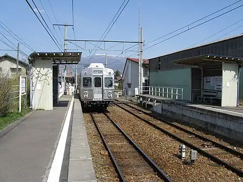 1. ^ "上田電鉄別所線 駅番号(駅ナンバリング)導入について" [Introduction of station numbers on the Ueda Electric Railway Bessho Line] (PDF). uedadentetsu.com (in Japanese). 31 March 2016. Archived from the original (PDF) on 17 April 2016. Retrieved 11 February 2023.
