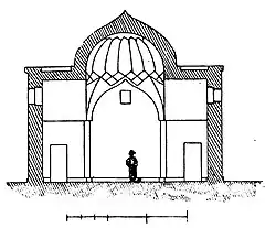 On the opposite side of the door, between the branches of the cross, there are two small rooms inside the thick stone walls. It is supposed to be used as a cell or warehouse where the tomb items were stored.[8] The external side of the dome covering upper part of the middle of the hall were decorated with glazed tiles. However, those tiles do not currently exist.[7]