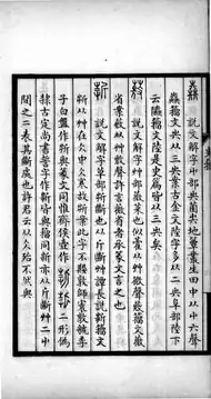 The philologist Wang Guowei (1877–1927) disputed this traditional account with epigraphical evidence that the structure and style of the Shizhoupian characters did not match inscriptions from the Western Zhou period.[4] Wang also doubted that zhòu (籀) was a person's surname, interpreting it to mean 讀 'to study and understand the meaning of books', 'to read', and concluded the dictionary title was likely taken from the first sentence Taishi zhoushu (太史籀書, "the Grand Historian reads the records").[5][6][7]