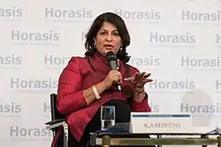 Kamineni Shobana has held various positions in the Apollo Group since a young age. She served as the president of the Confederation of Indian Industry from 2017 to 2018. She was the first woman to hold this position.[5][6][7][8] Kamineni has received an honorary doctorate from Bryant University, USA, in recognition of her work in healthcare and pharmaceuticals.[9]