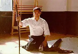 In 1957 or 1958, Nishio trained in jōdō with Takaji Shimizu (headmaster of Shintō Musō-ryū jōjutsu)[52] and Yari or art of the spear (Hōzōin-ryū sōjutsu).[3]