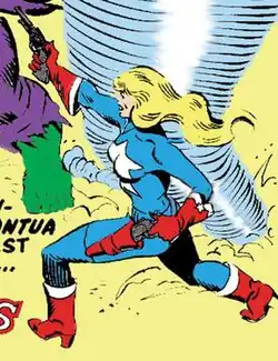 Writer Bill Mantlo and penciller Sal Buscema created the superheroine Shooting Star and the superhero team the Rangers, and both first appeared in the story "You Get What You Need!" published in Incredible Hulk (vol. 2) #265 (November 1981).[1][2] In addition to their new character, the team consists of western characters Firebird, Texas Twister, the Phantom Rider (Hamilton Slade, then called Night Rider), and the contemporary Red Wolf.[2] The next year, she appeared in the third issue of Marvel Super Hero Contest of Champions along with his colleague Texas Twister.