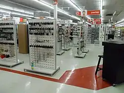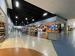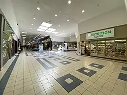 It opened in 1969 as Brampton's first indoor mall.[4] Major tenants at the time were Kmart, Dominion and Canada Safeway, with a total of 25 stores.[5] The movie theatre closed around 1985. It was gutted, and re-opened as a Jumbo Video. The projection booth served as the manager's office. The Canada Safeway store was the first in eastern Canada. Its opening was targeted by 10 picketers inspired by California's Delano grape strike; the store contacted mall management, who called in the Brampton Police. On the second return of police to the mall, protesters were ordered off the property. James Peters, president of United Auto Workers Local 1285 (American Motors) told the other pickets to leave, but stayed by himself. He was arrested, the first arrest since the demonstrations spread to Canada in 1967. The Dominion store did not carry California grapes.[6]