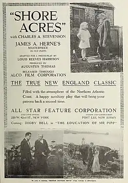 Shore Acres is a 1914 American silent drama film directed by Jack Pratt and starring Charles A. Stevenson, Riley Hatch and Conway Tearle. It is based on the 1893 play Shore Acres by James A. Herne, later also adapted into a 1920 film of the same title.[1]