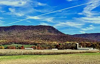 Short Mountain lies along the northwestern margin of Massanutten Mountain in Shenandoah County, Virginia. It is seven miles in length, from Mount Jackson on the south end to Edinburg on the north, so it was also once known as "Seven-mile Mountain".[3] The Massanutten Trail traverses the mountain.