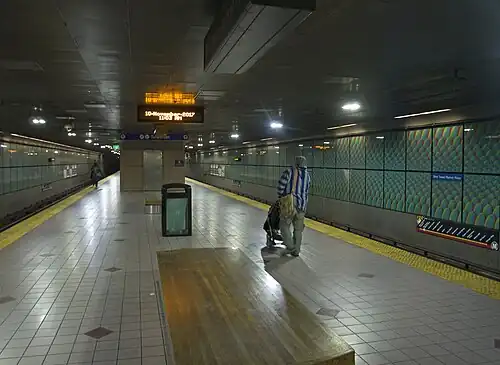 Shot Tower station (formerly Shot Tower/Market Place station) is an underground Metro SubwayLink station in Baltimore, Maryland. It is in the central part of the city, in close proximity to many well-known landmarks, including the Shot Tower for which it is named, Port Discovery, Power Plant Live!, the Harbor campus of Baltimore City Community College, the National Aquarium, the Flag House, City Hall, and Little Italy. The station has two street-level entrances, but unlike other Baltimore Metro stations that do, both these entrances share a common gate inside the station. The Shot Tower station is one of two stops in the third phase of the Baltimore Metro, having opened in 1995. Originally named Shot Tower/Market Place to showcase the proximity to the Market Place development, MTA Maryland dropped Market Place from its title with the 2017 rebranding of BaltimoreLink.